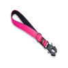 Our Traffic Control short lead has been designed to give greater control by removing the long lead that gives the dog more leeway. This lead is more suitable for medium to large dogs, and it can also be used in addition to a regular lead if you want to swap for a tighter hold. It features our most secure and robust clasp to keep a firm hold on your dog, which will automatically clamp when it comes into contact with an anchor point and can be easily released by pressing the 2 clips at the sides. This Traffic Control dog leash is made from firmly weaved nylon to create a long lasting, durable lead. Can be used as an extension for regular leads or to attach 2 leads for better control over 2 dogs. All our dog leads feature a D ring on the handle which is Ideal for attaching a dog treat bag, poo bag dispenser or clipping on to a hands-free dog walking belt. In-house design and testing by our office dogs, Ruby & Boyo. Available in 8 colours, Pink, Purple, Green, Blue, Black, Orange. Grey and khaki